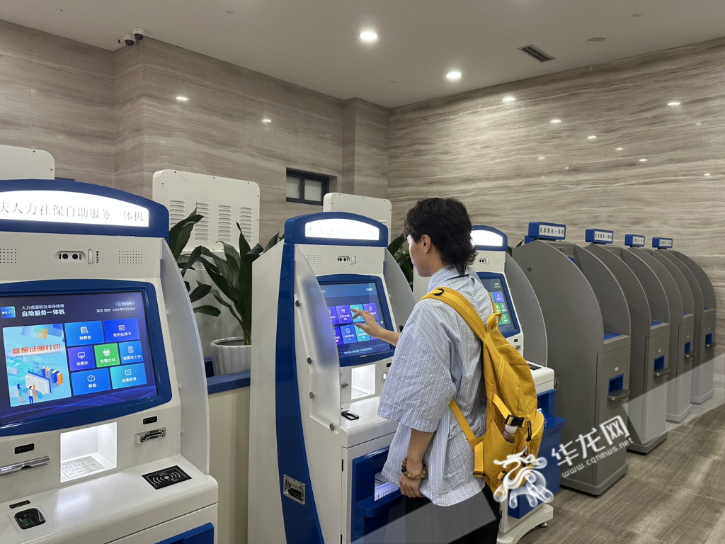 掌上办”渝快办app长黎勇表示,市民正在办营业执照人力社保自助服务一体机上办理业务。