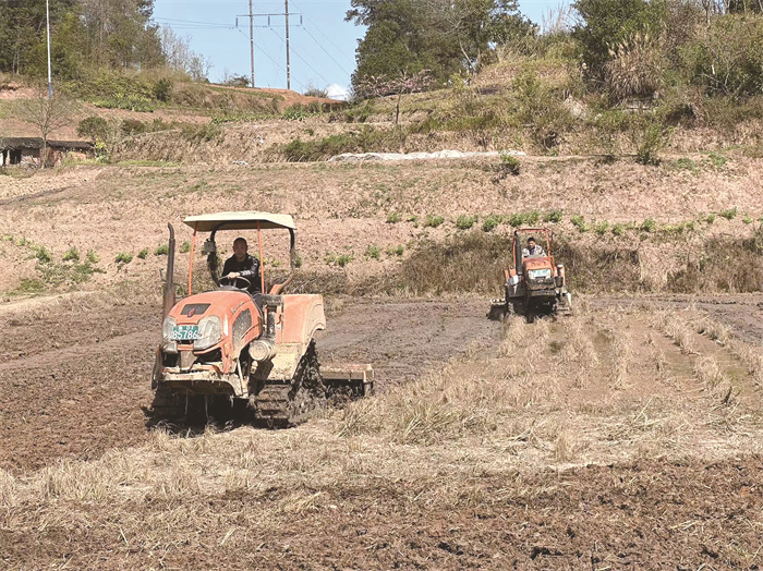夏于明家有近7亩地,耕作结束后,将全部投入水稻种植。他说:“以前我们都是采用小型农机自己耕,要耕两三天,现在用拖拉机耕地,一两个小时就耕完了,种地轻松多了。”